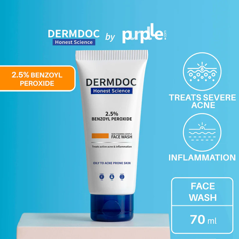 Dermdoc 2.5% Benzoyl Peroxide Gentle Non Foaming Face Wash For Severe Acne (70ml)